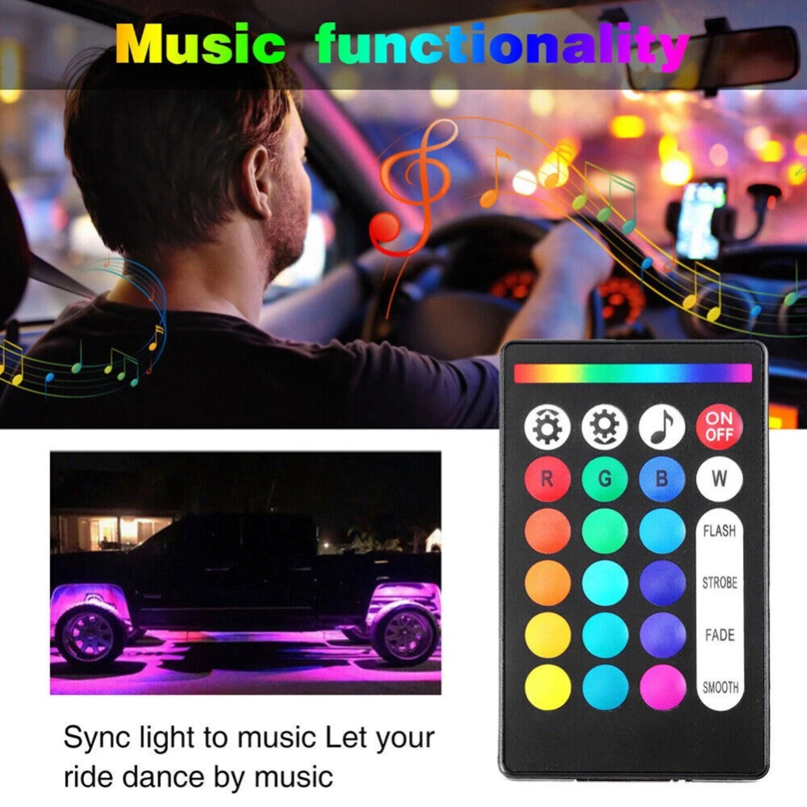 BLUETOOTH RGB ROCK LIGHTS: Transform your vehicle’s look with this Bluetooth-controlled RGB LED Rock Light Kit. Featuring 16 million colours, music sync mode, and IP68 waterproof protection, it delivers powerful illumination and a striking off-road lighting experience.
