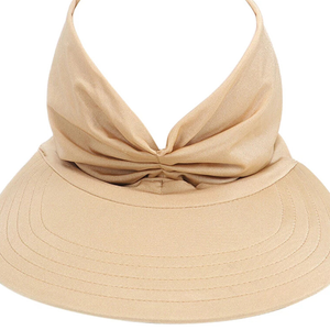 Summer Women Sport Pony Tail Visor Hat Swimming Cap Wide Brim Sun Shade Camel