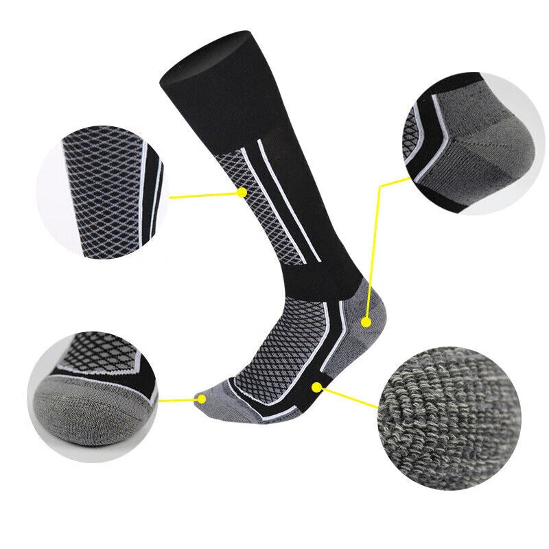 Thick Winter Sports Socks Men Long Warm Breathable Ski Socks Grey Black