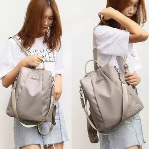 Waterproof Oxford Women Anti-theft Double Shoulder Bag Travel Backpack Khaki